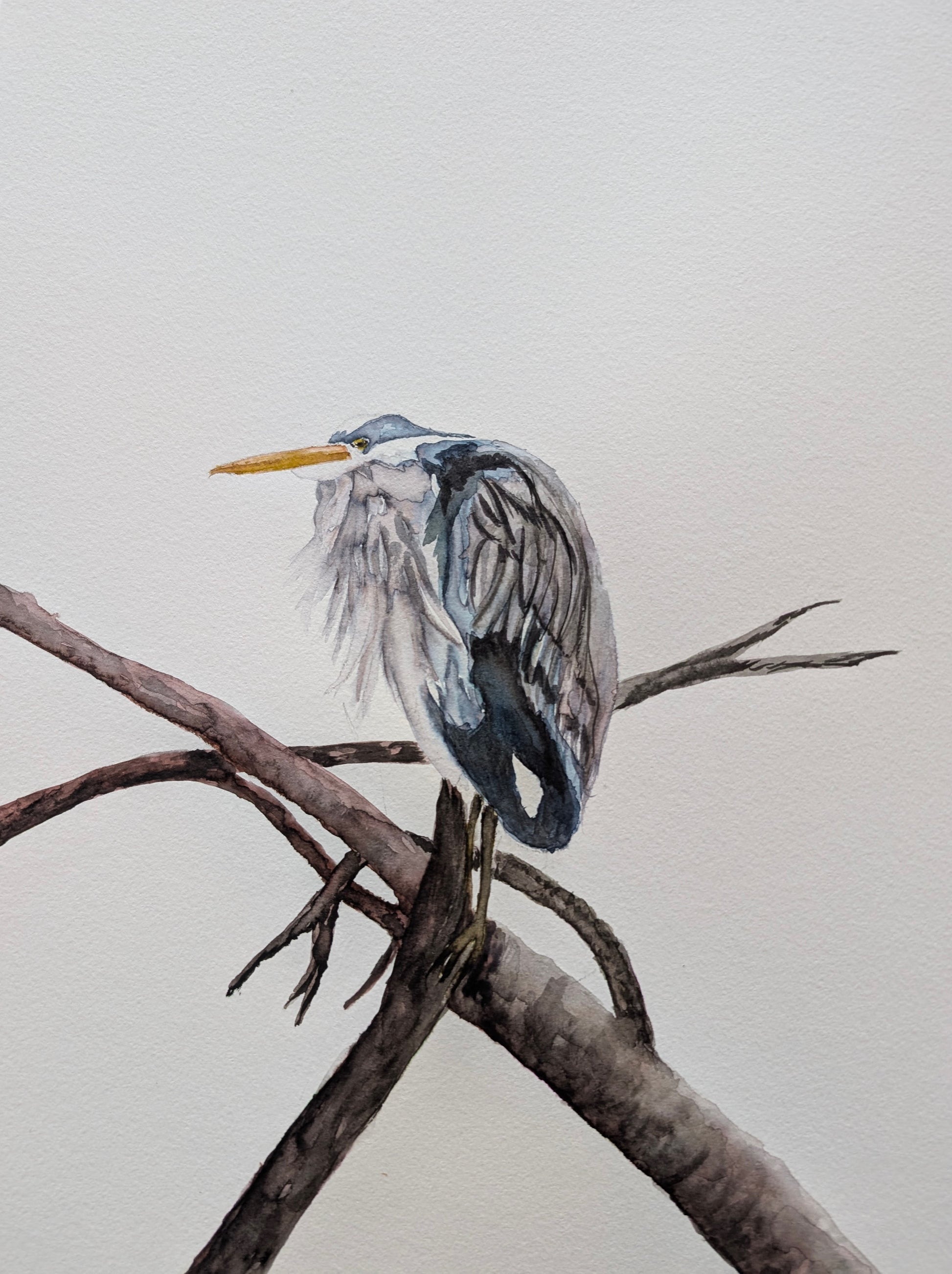 Inspired by quiet Kent Island mornings, this original watercolor heron captures that rare moment when the world slows down, and you remember to breathe.